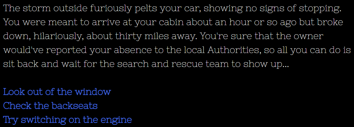 One Night in The Alps (2020) - Game Jam Project (Twine)
